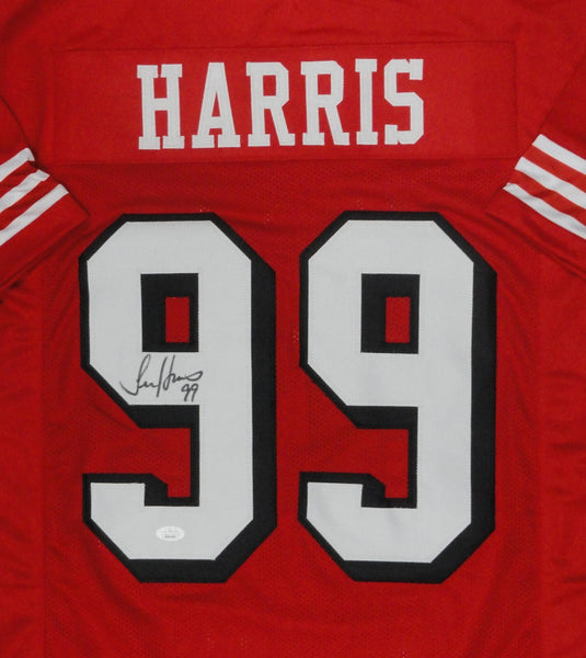 Custom Replica Jersey of San Francisco 49ers Super Bowl Champion Linebacker TIM HARRIS. This jersey is signed with black sharpie. This jersey is size XL and all letters and numbers sewn in. This item was signed at a public signing with us and would make a great addition to any 49ers collection. This item is guaranteed to be 100% authentic and includes JSA authentication.