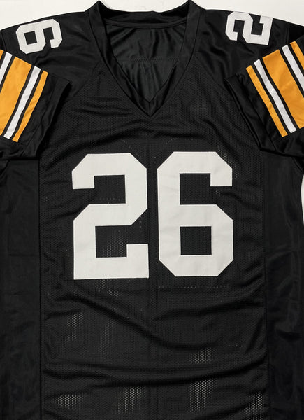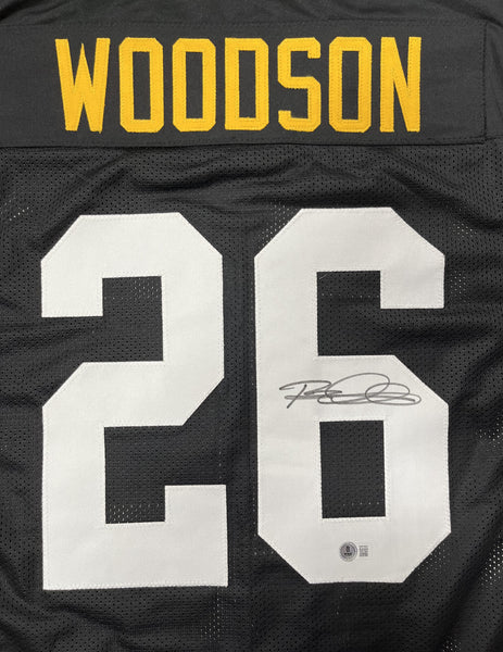 Custom Replica jersey hand signed by Pittsburgh Steelers Hall of Famer ROD WOODSON. The signature is in Black Paint Pen. This jersey was signed at a private signing with us and would make a great addition to any Steelers collection! The jersey size is XL and all letters and numbers are sewn in. This autograph is guaranteed to be 100% authentic and will include a COA hologram from Beckett authentication.