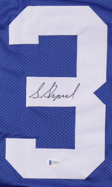 Custom on-field style jersey. Everything is sewn on, size XL. Has been hand-signed by Sterling Shepard.The lot / autograph(s) includes an official Beckett Authentication Services serially numbered scannable hologram and QR Code card for authenticity purposes. The signing of this item was witnessed by Beckett.Authentication: Beckett Scannable Hologram with QR Code card