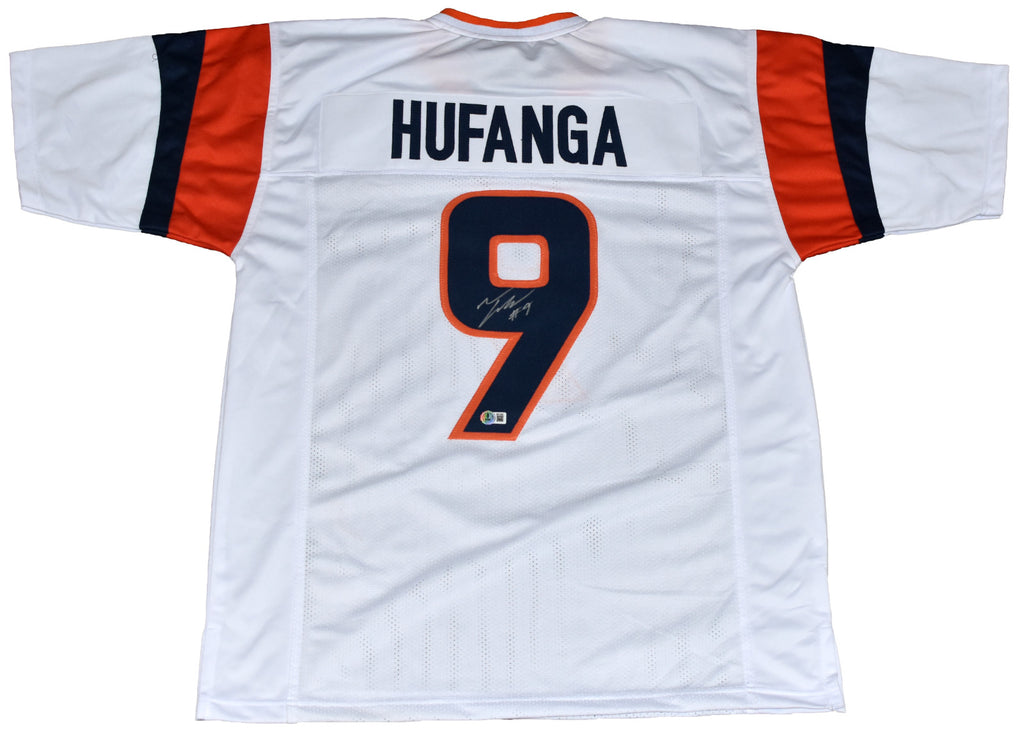 Talanoa Hufanga, star safety for the Denver Broncos, has hand signed this white custom jersey at a private signing. Jersey is size XL and all letters/numbers are sewn-on. This item is authenticated by Beckett Authentication Services and was signed in the presence of one of their representatives. Their tamper-evident hologram featuring a QR code and serial number is on the item. The authenticity can be verified online by entering the serial number or scanning the QR code.Item pictured may not be the exact item you will receive. It will be similar quality, and we guarantee your satisfaction.