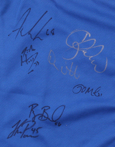 Custom on-field style jersey. Everything is sewn on, size 44. Hand-signed in black felt-tip pen and silver paint pen by Devon White, Deck McGuire, Arnold Leon, Ryan Borucki, Matt Dermody, John Axford and (7) others. The lot / autograph(s) includes a James Spence Authentication (JSA) Auction House LOA for authenticity purposes.Authentication: JSA ALOA