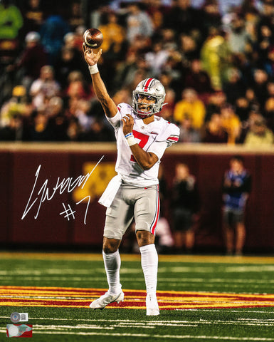C.J. (CJ) Stroud Signed Ohio State Passing Action 16x20 Photo - (BECKETT COA)