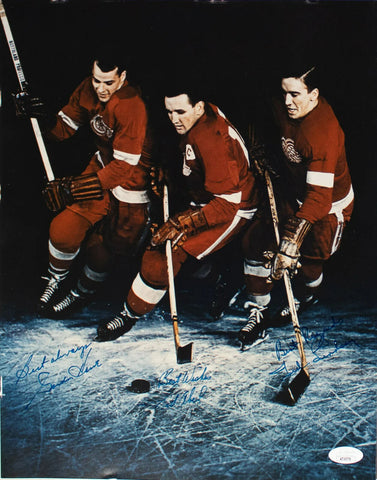 Gordie Howe, Ted Lindsay & Sid Abel Signed Detroit Red Wings 11x14 Photo JSA COA