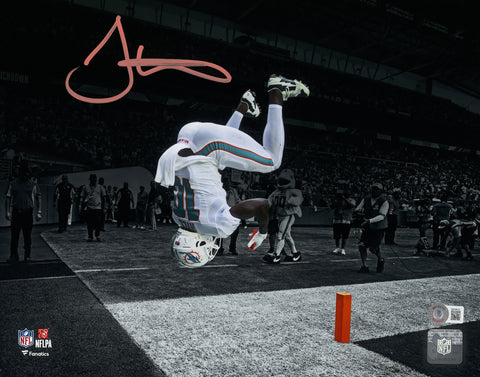 Tyreek Hill Miami Dolphins Signed Backflip Touchdown Spotlight 16x20 BAS Beckett