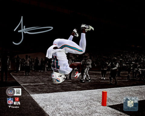 Tyreek Hill Miami Dolphins Signed Backflip Touchdown Spotlight 8x10 BAS Beckett