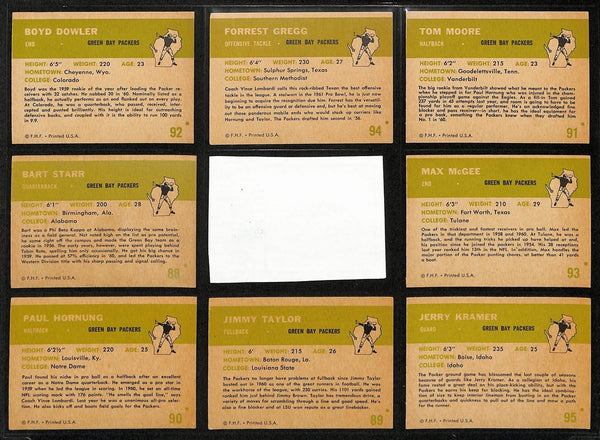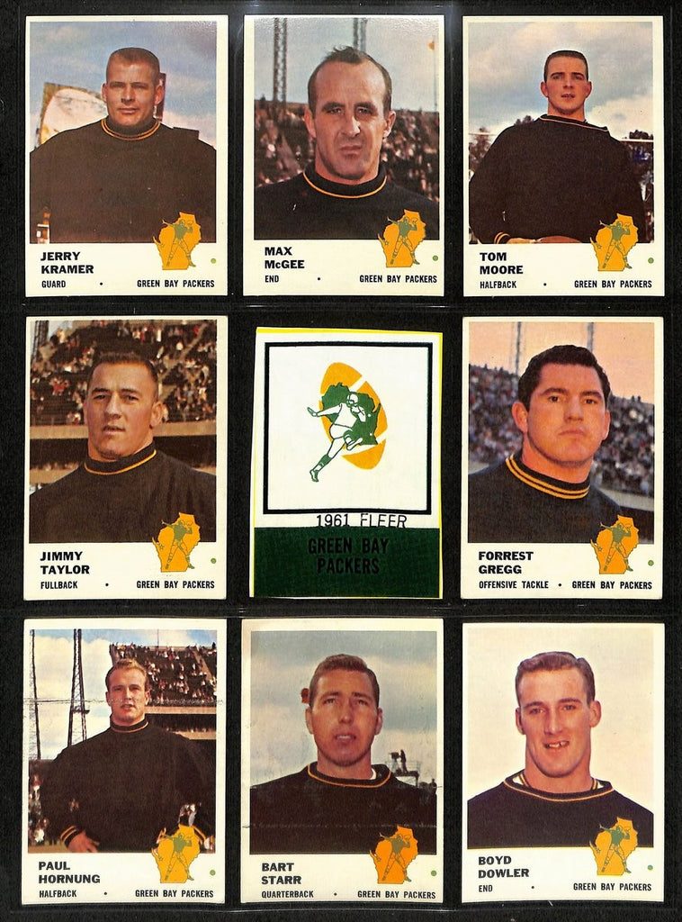 1961 FLEER Football Cards Green Bay Packers Complete Team Set (10).