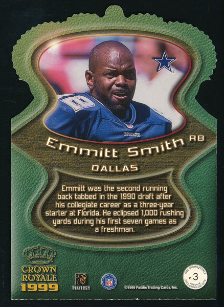 1999 pacific crown royale emmitt smith hof gold crown 462/976 jumbo #3 dallas cowboys. no creases, clean. you will receive the exact original card pictured.