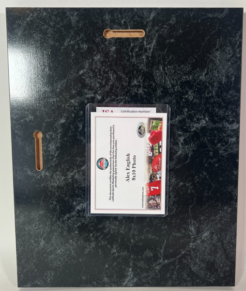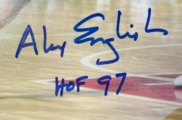 Own a piece of basketball history with this premium Alex English autographed 8x10 photo, beautifully presented with a custom plaque. This exclusive collectible features the authentic signature of the Hall of Fame forward along with the special inscription "HOF 97," commemorating his 1997 induction into the Naismith Memorial Basketball Hall of Fame. What Makes This Special: Hand-signed by Alex English with "HOF 97" inscription Professional 8x10 photograph capturing an iconic moment Elegant plaque presentation ready for display Authenticated by JSA (James Spence Authentication) with Certificate of Authenticity Perfect for your home, office, or sports memorabilia collection About Alex English:Alex English is one of the most prolific scorers in NBA history and the Denver Nuggets' all-time leading scorer. During his legendary career, English was an 8-time NBA All-Star and led the league in scoring in 1983. His smooth shooting stroke and consistent excellence made him the dominant offensive force of the 1980s. In 1997, English was inducted into the Basketball Hall of Fame, cementing his legacy as one of the game's greatest players. This authenticated piece arrives ready to display and makes an exceptional gift for any Nuggets fan or serious basketball memorabilia collector. The JSA Certificate of Authenticity guarantees the signature's legitimacy, ensuring lasting value and peace of mind.