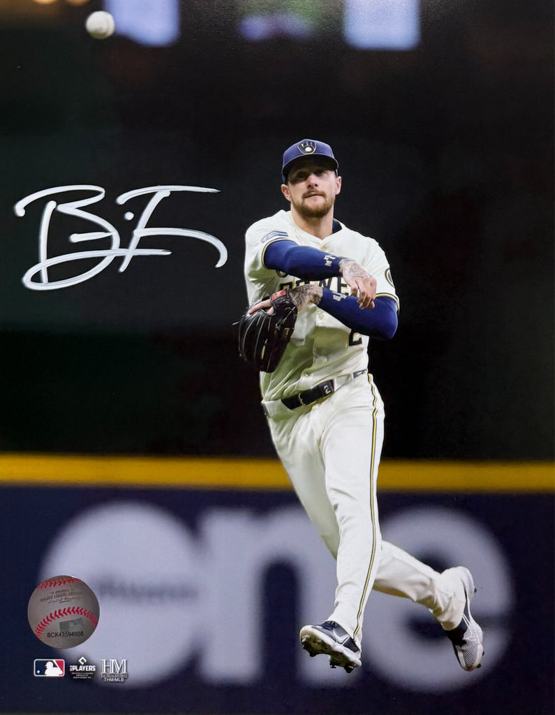 An 8x10 hand signed photo of Milwaukee Brewers Infielder BRICE TURANG. The signature is in White paint pen. This item was signed at a private signing with us. This would make a great addition to any BREWERS collection! This item is guaranteed to be 100% authentic and will include a store COA with matching tamper proof holograms.