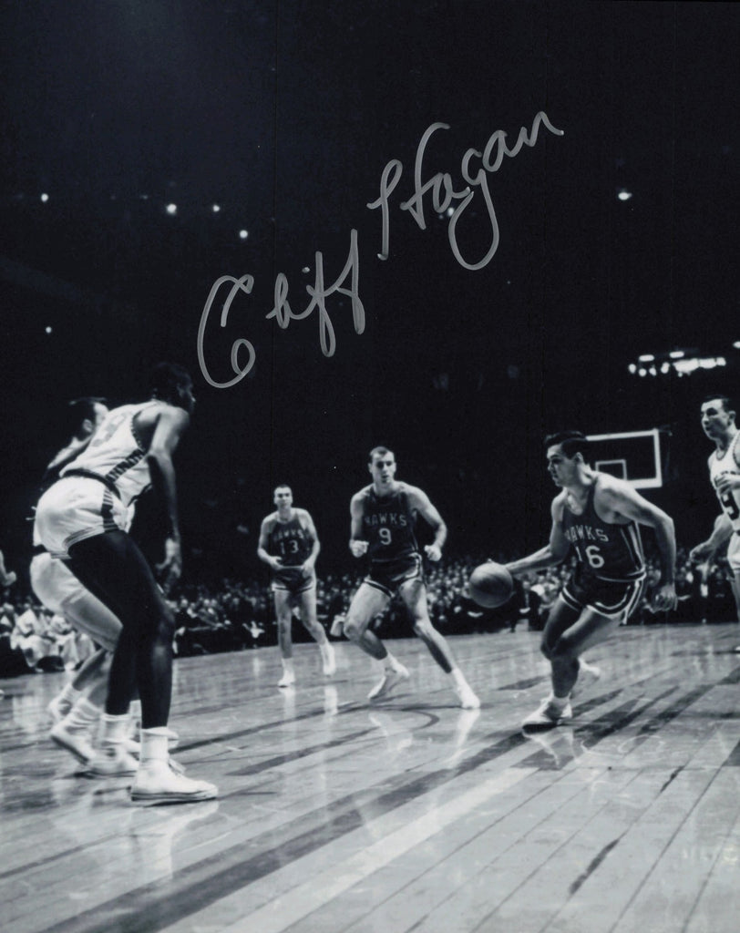 This is an 8x10 Photo that has been hand signed by Cliff Hagan. This item is guaranteed to pass any third party authentication company including Beckett, PSA/DNA, & JSA authentication.