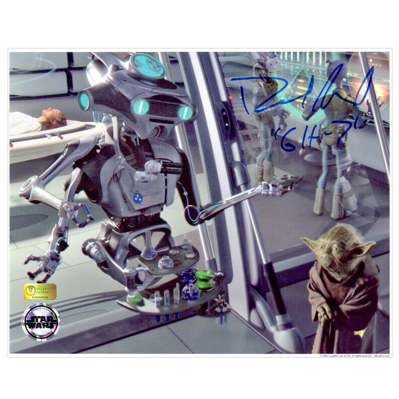 This 8x10 photo of GH-7 and Yoda from Star Wars Episode III: Revenge of the Sith has been personally hand-signed by David Acord during his signing with Celebrity Authentics. Ships affixed with Celebrity Authentics serial-numbered and tamper evident Authentication Hologram and includes Celebrity Authentics Certificates of Authenticity featuring picture of David signing photo. Please note: with multiples signed by the actor, a sample photo is used from stock to represent what you will receive. Exact autograph size and placement may vary.