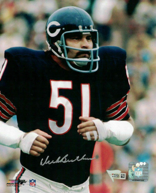 Dick Butkus Autographed/Signed Chicago Bears 8x10 Photo FAN 21227 PF This is an officially licensed 8x10 photo that was personally autographed by Dick Butkus.This photoincludes a Fanatics authentic hologram and a certificate of authenticity from Denver Autographs.