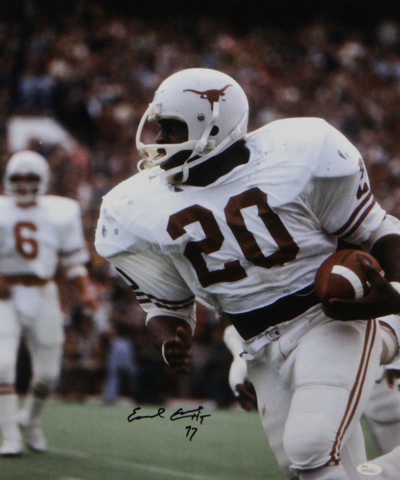 Earl Campbell Autographed UT Longhorns 16x20 Photo In White Jersey w/ HT- JSA W Auth *Black This is a Hand Autographed 16x20 Photo of Earl Campbell of the University of Texas Longhorns. This item has a James Spence Witness Authentication, which comes with a JSA #'ed Sticker and a Matching JSA COA. You can view this item on the SpenceLOA website. It was signed either at a public autograph appearance or a private signing. This is a stock photo of the item. Although you may not receive this exact item, the item you receive is virtually identical and brand new in great shape.