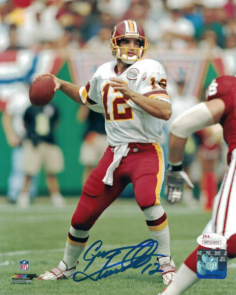 Gus Frerotte Autographed/Signed Washington Redskins 8x10 Photo JSA 15126 PF This is an 8x10 officially licensed photo that was personally signed by Gus Frerotte. He played for 14 seasons for 7 different teams. Pro Bowl Quarterback Frerotte is also tied for the longest touchdown pass in NFL history (99 yards against the Chicago Bears). This item includes a certificate of authenticity from James Spence Authentication (JSA) and Denver Autographs.