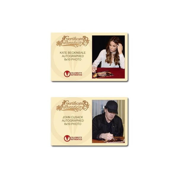 Celebrity Authentics is the exclusive autograph partner of Kate Beckinsale. Please be aware most other online autographs purported to be Ms. Beckinsale's are forgeries. Ms. Beckinsale has only signed with Celebrity Authentics so be sure the item you choose is affixed with the Celebrity Authentics Authentication Hologram for her genuine signature.This 8x10 photo from the fan favorite Serendipity has been personally hand-signed by film stars Kate Beckinsale and John Cusack during their signings with Celebrity Authentics. In this classic romance film, Sara (Kate) asks Jonathan (John) to write his name and phone number on a $5 bill, while she writes her name and number on the inside cover of a copy of Love in the Time of Cholera. If they are meant to be together, he will find the book and she will find the $5 bill, and they will find their way back to each other. Ships affixed with Celebrity Authentics serial-numbered and tamper evident Authentication Hologram and Celebrity Authentics Certificates of Authenticity featuring pictures of Kate and John signing photo. Please note: with multiples signed by the actor, a sample photo is used from stock to represent what you will receive. Exact autograph size and placement may vary.