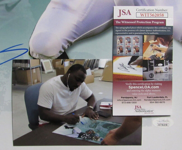 Lesean mccoy philadelphia eagles signed/autographed 16x20 photo. this photo is authenticated by jsa and includes their tamper-proof hologram and certificate of authenticity.