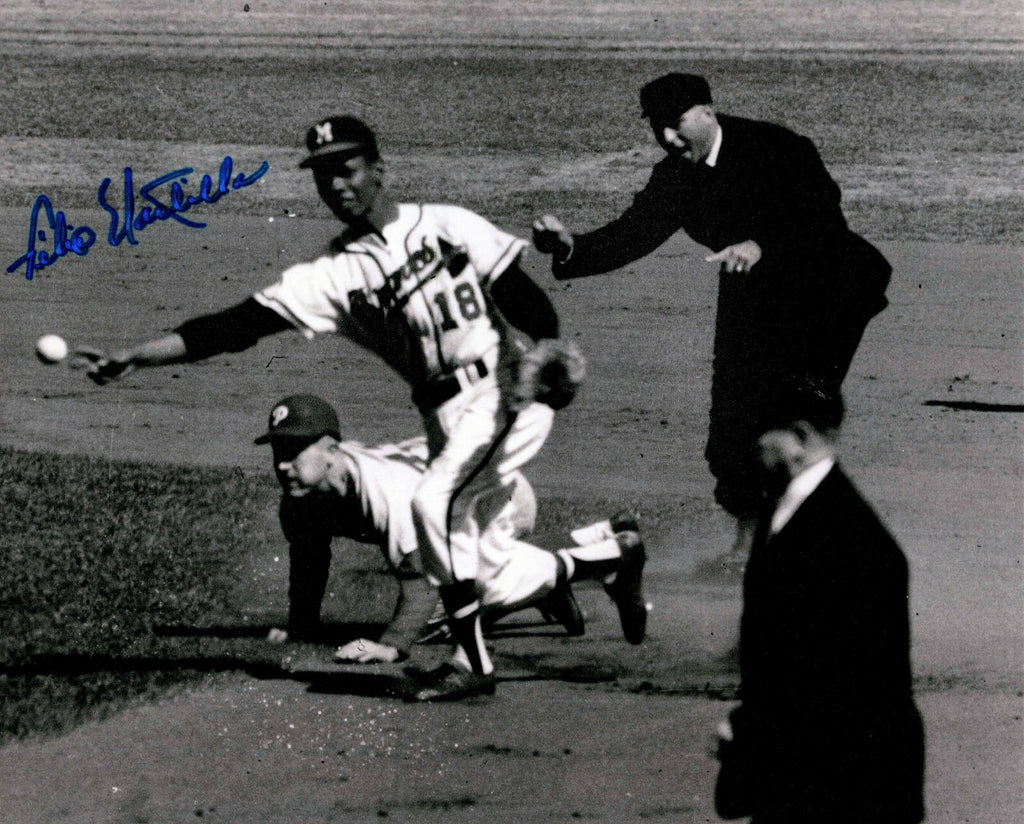 An 8x10 hand signed photo of former MILWAUKEE BRAVES World Series Champ FELIX MANTILLA. The signature is in BLUE sharpie. MANTILLA was a member of the 1957 Milwaukee Braves Championship Team. This photo was signed at a public signing in our store. This would make a great addition to any BRAVES collection! This item is guaranteed to be 100% authentic and will include a store COA with matching tamper proof holograms.