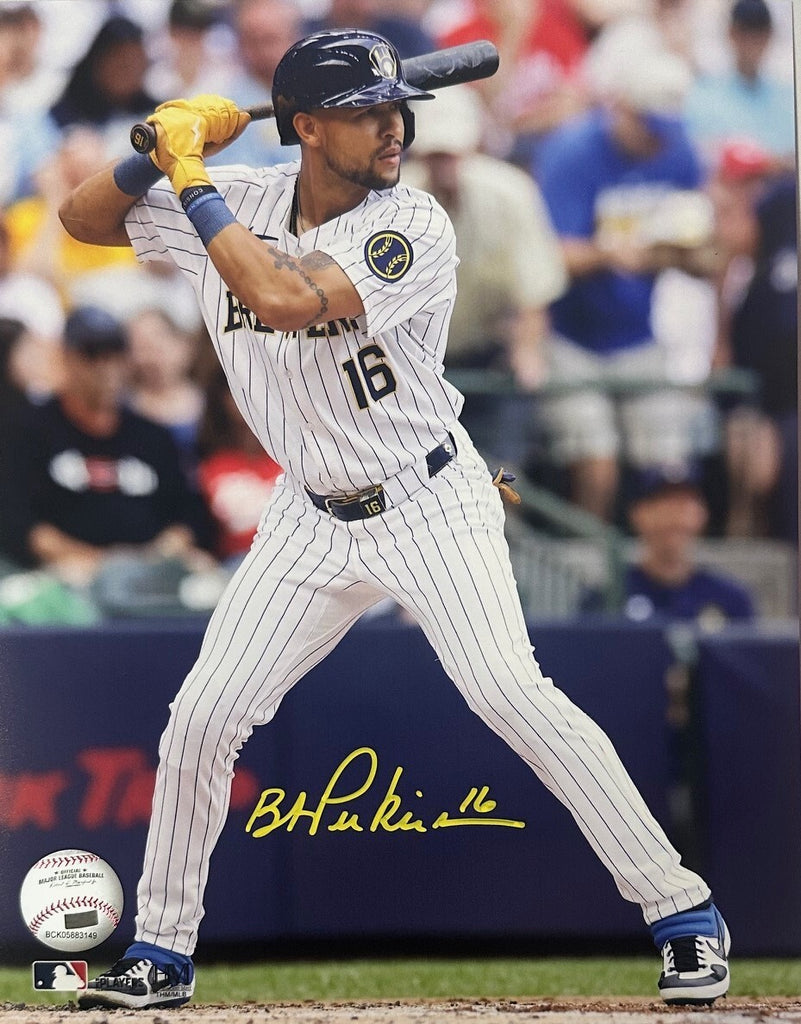 An 8x10 hand signed photo of Milwaukee Brewers Outfielder BLAKE PERKINS. The signature is in Yellow paint pen. This item was signed at a private signing with us. This would make a great addition to any BREWERS collection! This item is guaranteed to be 100% authentic and will include a store COA with matching tamper proof holograms.