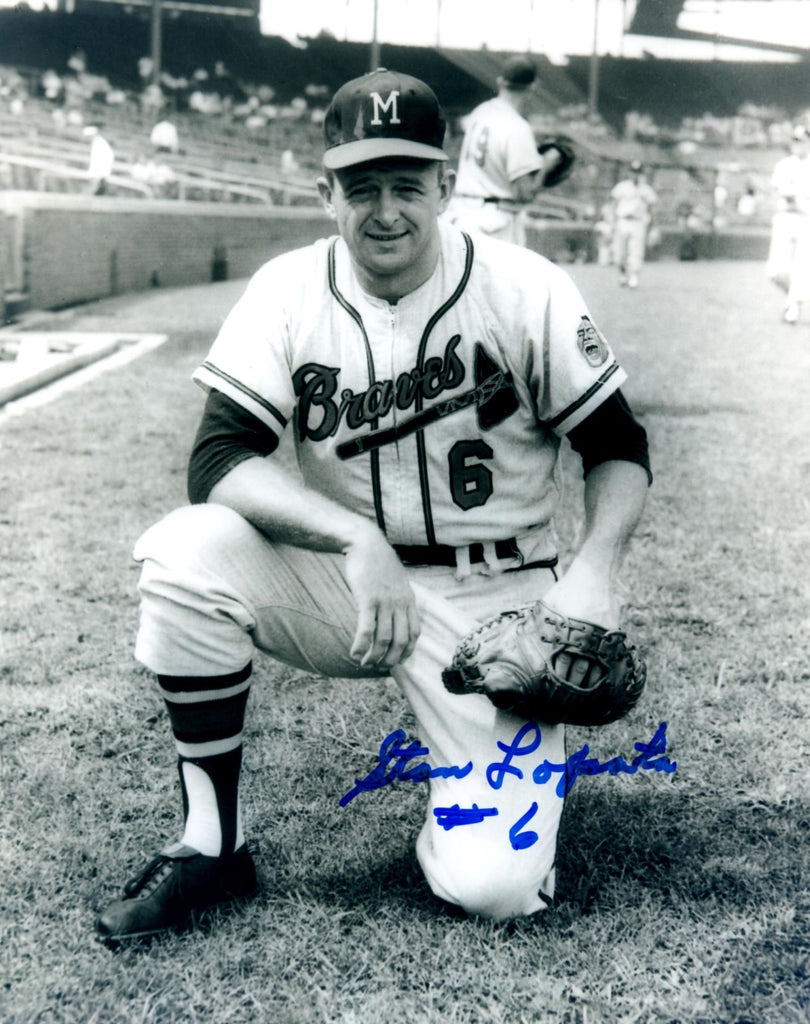 An 8x10 hand signed photo of former Milwaukee Braves player STAN LOPATA. The signature is in BLUE sharpie. This photo was signed at a private signing. This would make a great addition to any Braves collection! This item is guaranteed to be 100% authentic and will include a store COA.