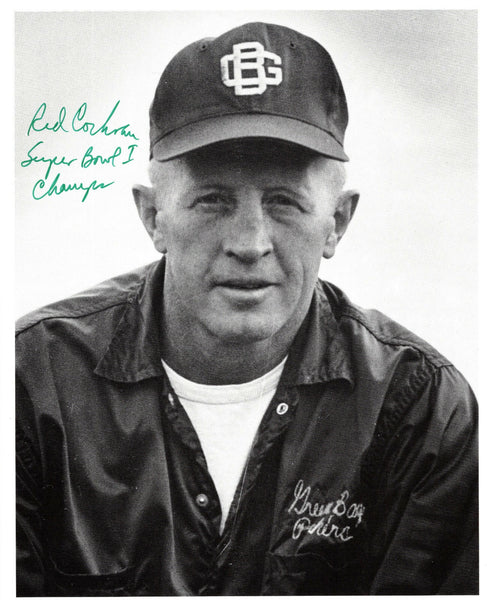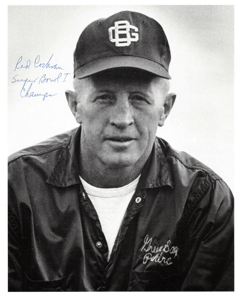An 8x10 hand signed photo of former Green Bay Packer Coach RED COCHRAN (deceased). The signature is in Blue or Green sharpie with the inscription "SB I Champs" (You will get one signed in blue if you do not specify which color you want in the comment section when checking out). Cochran was a member of the Super Bowl I championship teams. This would make a great addition to any Packer collection. This photo was signed at a public signing in our store. This item is guaranteed to be 100% authentic and will include a COA with matching serial numbered holograms.