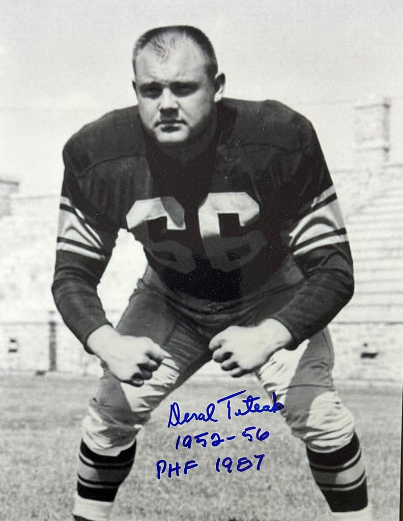An 8x10 hand signed photo of former Green Bay Packer Pro Bowler DERAL TETEAK. The signature is in blue sharpie and includes the inscription "1952-56 & PHF 1987" . TETEAK was a member of the Packers from 1952-56 and is also a member of the Green Bay Packer Hall of Fame. This photo was signed at a public signing in our store. This item is guaranteed to be 100% authentic and will include a COA from Waukesha Sportscards with matching serial numbered holograms