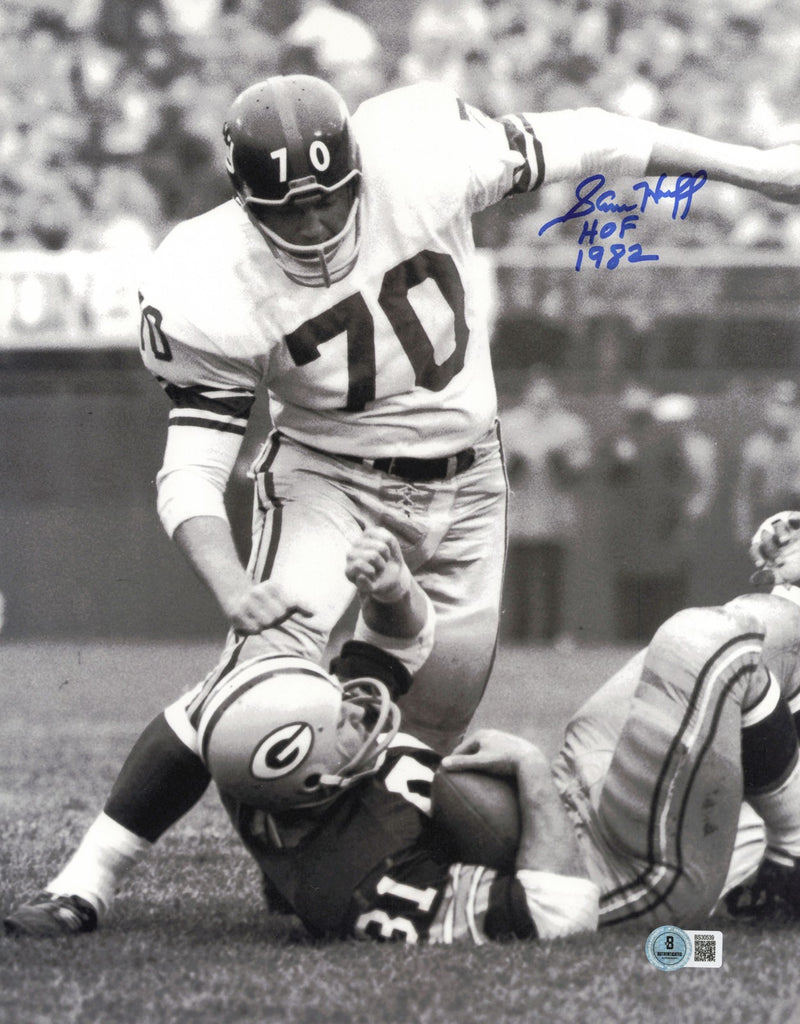 Sam Huff Autographed 11x14 Photo New York Giants "HOF 1982" Beckett QR #BS30539