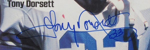 Tony dorsett hof autographed august 12, 1985 sports illustrated cover dallas cowboys. this photo is authenticated by jsa and includes their tamper-proof sticker and certificate of authenticity.