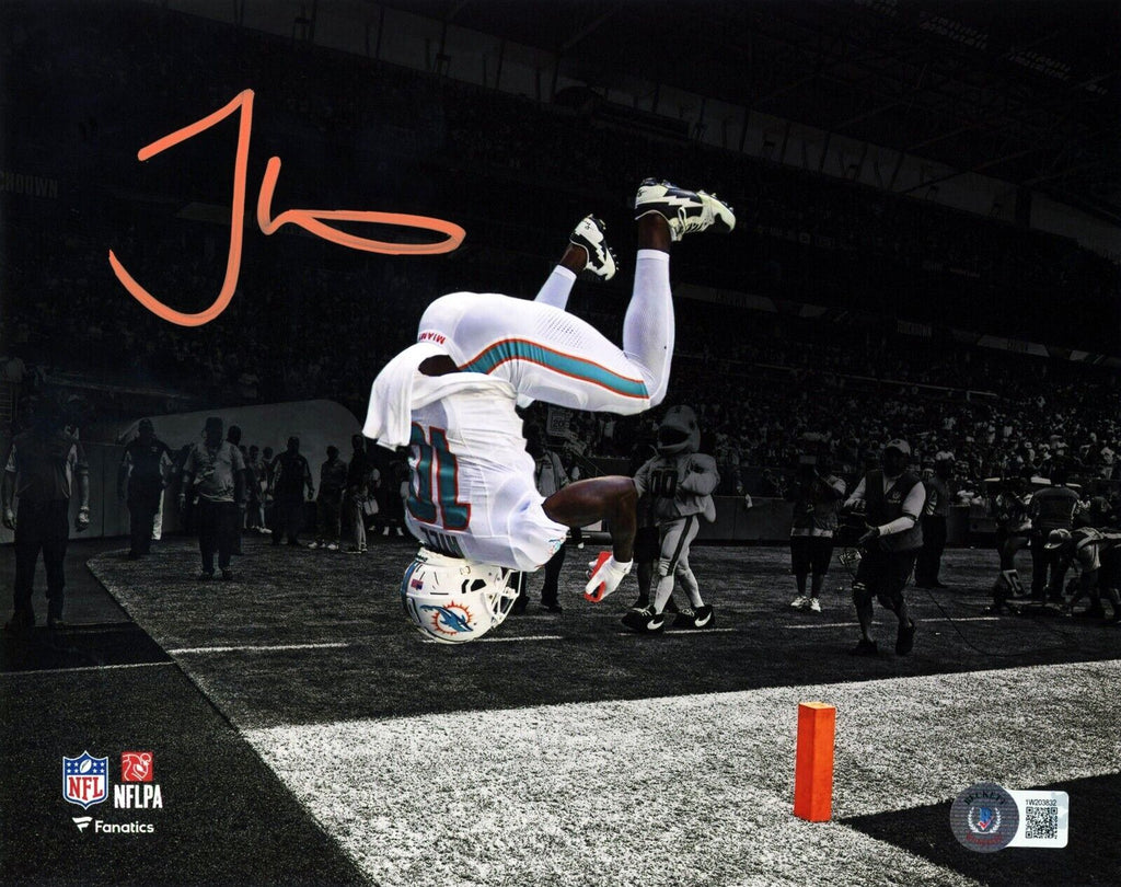 Tyreek Hill Miami Dolphins Signed Backflip Touchdown Spotlight 8x10 BAS Beckett