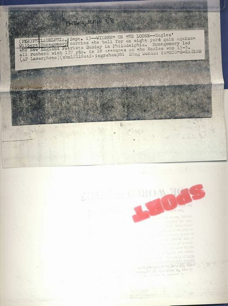 Wilbert Montgomery Eagles 1981 wire photo Eagles vs. Patriots113639