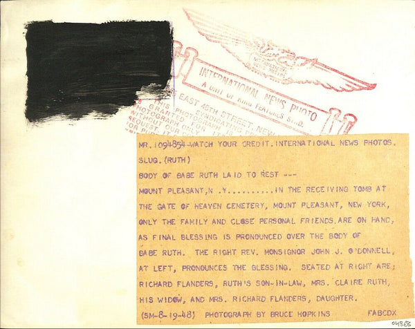 Featured is a Babe Ruth 7x9 funeral original wire stamped photo. This photo would make a great addition to any sports memorabilia collection!. SPECIFICATIONS Autographed By: Team: New York Yankees Sport: Baseball Authentication: James Spence Authentication (JSA)