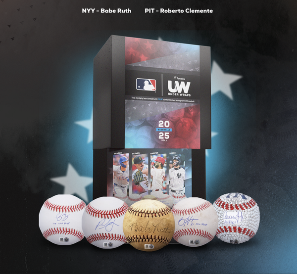 Welcome to the Fanatics Branded 2025 Under Wraps MLB Mystery Box Baseball Edition. This auction is for one factory sealed (shrink wrapped) box that includes one autographed baseball. Attached to this listing is an image of the checklist, detailing every baseball available in this Mystery Box format. There are current stars like Aaron Judge, Shohei Ohtani, Paul Skenes, Bryce Harper, Corey Seager and so many more. Some of the past greats represented in this series include Babe Ruth, Roberto Clemente and countless more. There are team signed baseballs, game used baseballs, all star baseballs, world series baseballs and even multi-signed baseballs. Simply put, this will not last long, so order yours today. Please note that due to the nature of this item, returns will not be accepted. There is no guarantee which ball is in each box. Made in the USA Fanatics Authentic Presented by Mounted Memories Includes tamper-evident hologram to ensure authenticity Officially licensed This product is guaranteed authentic and includes a Fanatics Certificate of Authenticity and an accompanying tamper-evident Fanatics Hologram.
