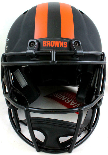 Baker Mayfield Nick Chubb Signed Browns F/S Authentic Eclipse Helmet- Beckett This is a Baker Mayfield and Nick Chubb of the Cleveland Browns hand autographed Riddell Football Full Size Eclipse Speed Authentic Helmet. This item has a Beckett Authentication, which comes with a numbered and a matching Beckett Certificate of Authenticity. You can view this item on the Beckett Authentication website and it shows when and where the item was signed. It was signed either at a public autograph appearance or a private signing. This is a stock photo of the item. Although you may not receive this exact item, the item you receive is virtually identical, brand new, and in great shape.
