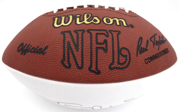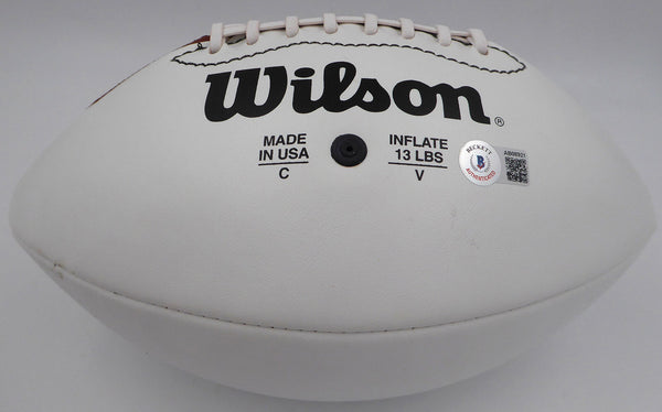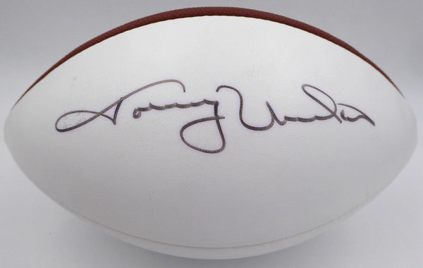 This is a White Panel Football that has been hand signed by Johnny Unitas. This item has been certified authentic by Beckett Authentication (BAS) and comes with their tamper-proof sticker and matching full-page certificate of authenticity.