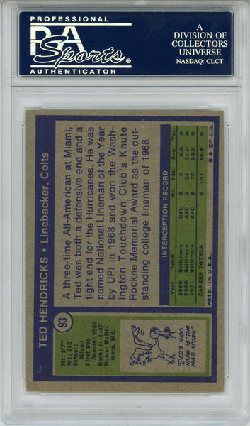Ted Hendricks Autographed/Signed 1972 Topps #93 Trading Card PSA Slab 43699