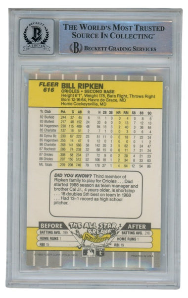 Billy Ripken Autographed 1989 Fleer #616 Error Card 10 Grade Beckett 52538
