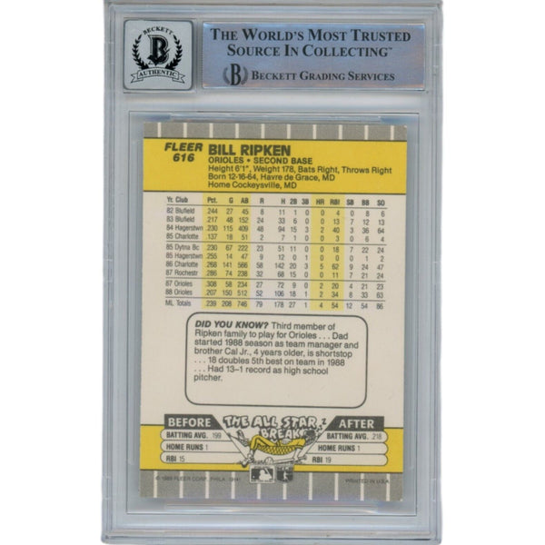 Billy Ripken Autographed 1989 Fleer 616 Trading Card 10 Grade Beckett 47080