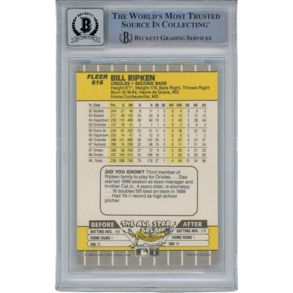 Billy Ripken Autographed 1989 Fleer 616 Trading Card 10 Grade Beckett 47083