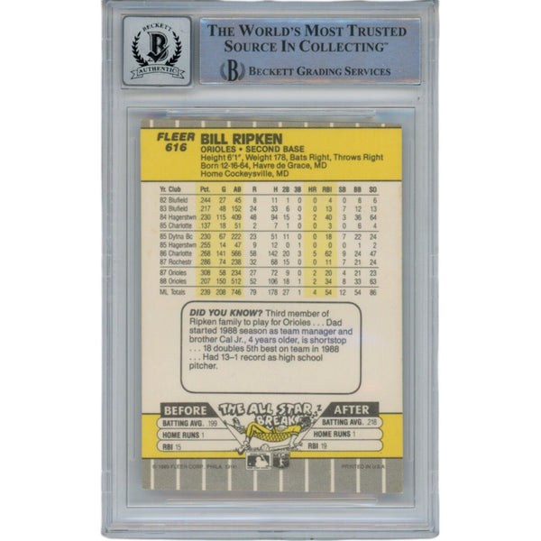 Billy Ripken Autographed 1989 Fleer 616 Trading Card 10 Grade Beckett 47133