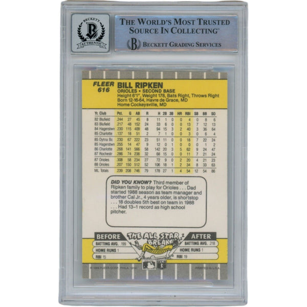 Billy Ripken Autographed 1989 Fleer 616 Trading Card 10 Grade Beckett 47137