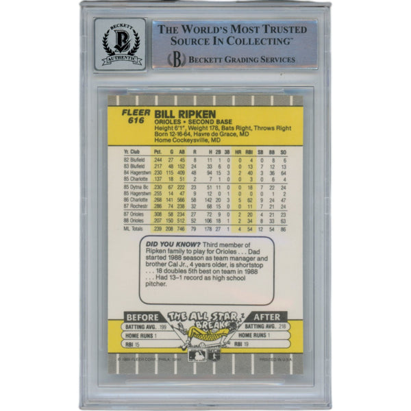 Billy Ripken Autographed 1989 Fleer 616 Trading Card 10 Grade Beckett 49359