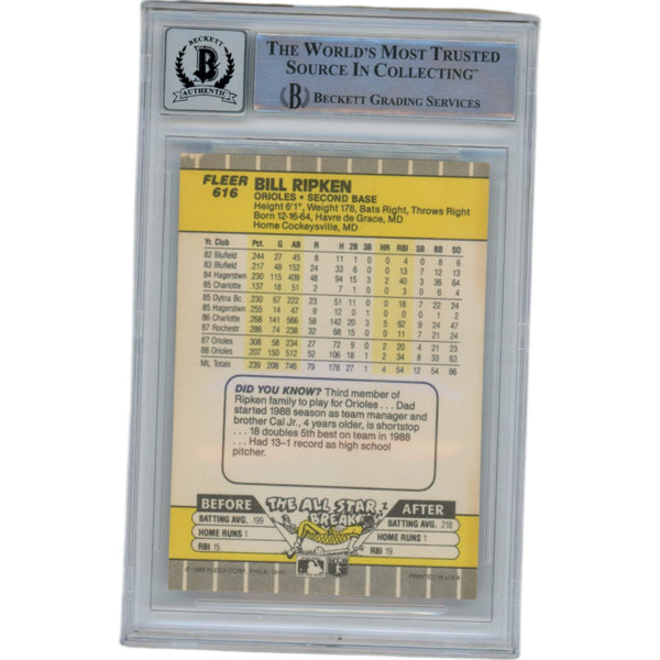 The number in the listing title is just an inventory sku for our records and is not the authentication number. The item pictured is the exact item you will receive, please see photos for condition. This is a Baltimore Orioles 1989 Fleer #616 Slabbed Trading Card with a 10 Grade Autograph that was personally autographed by Billy Ripken. Includes a certificate of authenticity from Beckett Authentication Services (BAS) and Denver Autographs.FREE SHIPPING within the USA on orders over $10!