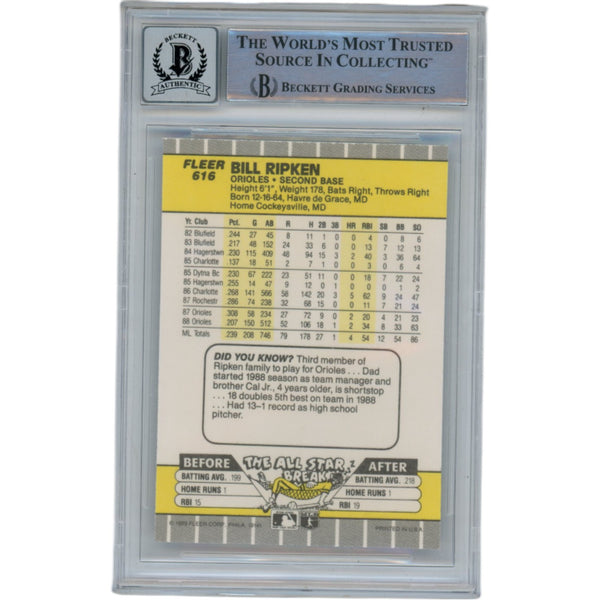 Billy Ripken Autographed 1989 Fleer 616 Trading Card 10 Grade Beckett 49383