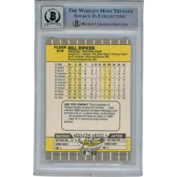 Billy Ripken Autographed 1989 Fleer 616 Trading Card 10 Grade Beckett 49391