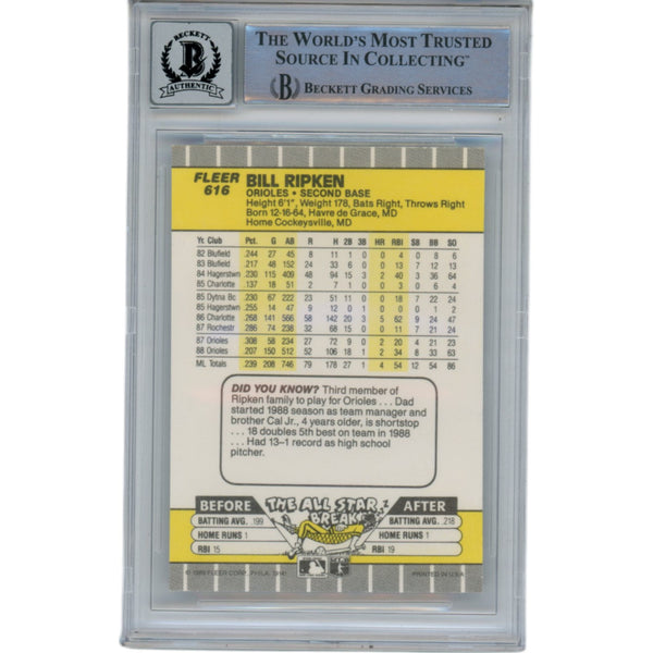 Billy Ripken Autographed 1989 Fleer 616 Trading Card 10 Grade Beckett 49393