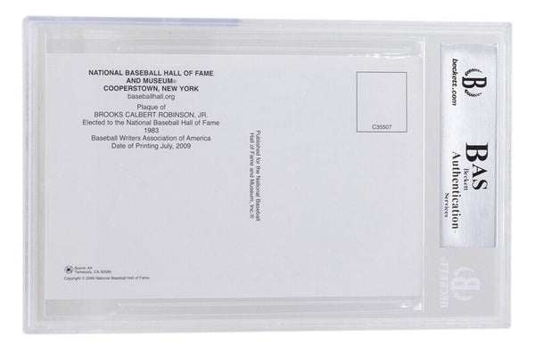 Brooks Robinson Signed Slabbed Orioles Hall of Fame Plaque Postcard BAS 105