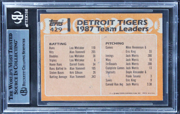 This Autographed 1988 Topps #429 Card has been Personally Signed by Alan Trammel of the Baltimore Orioles. This item is 100% Authentic, it comes slabbed and authenticated by Beckett Authentication Services. The authenticity can be verified on Beckett Authentication Services website.