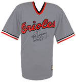 Rick Dempsey signed Baltimore Orioles gray Majestic replica baseball Jersey with 'MVP 83 WS' inscription. Jersey is signed on the front and back of the jersey is blank. Item comes with a Schwartz Sports Memorabilia tamper-proof numbered hologram and Certificate of Authenticity which can be verified online.