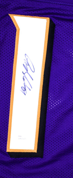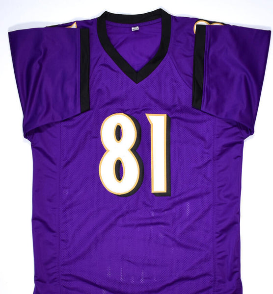 Anquan Boldin Autographed Purple Pro Style Jersey- JSA W *Black THIS IS NOT AN NFL JERSEY. THIS HAS NO TAGS, NO LOGOS, NO EMBLEMS. This is a Hand Autograph of Anquan Boldin on a custom made (Non Name Brand) authentic style jersey with stitched letters and numbers. This item has a James Spence Witness Authentication, which comes with a JSA #'ed sticker and a matching JSA certificate of authenticity. You can view this item on the SpenceLOA website and it shows when and where the item was signed. It was signed either at a public autograph appearance or a private signing. This is a stock photo of the item. Although you may not receive this exact item, the item you receive is virtually identical and brand new in great shape. Jersey size is XL.