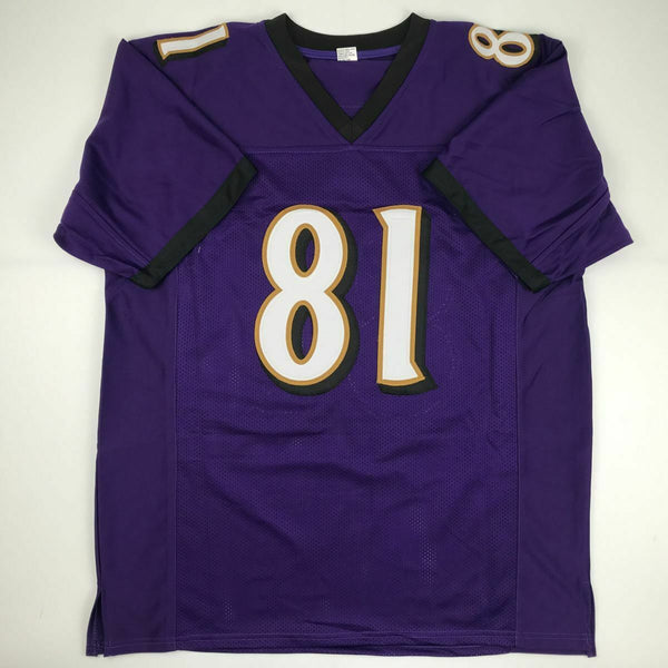 Autographed/Signed ANQUAN BOLDIN Baltimore Purple Football Jersey Beckett COA
