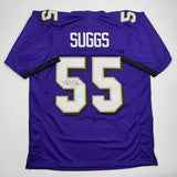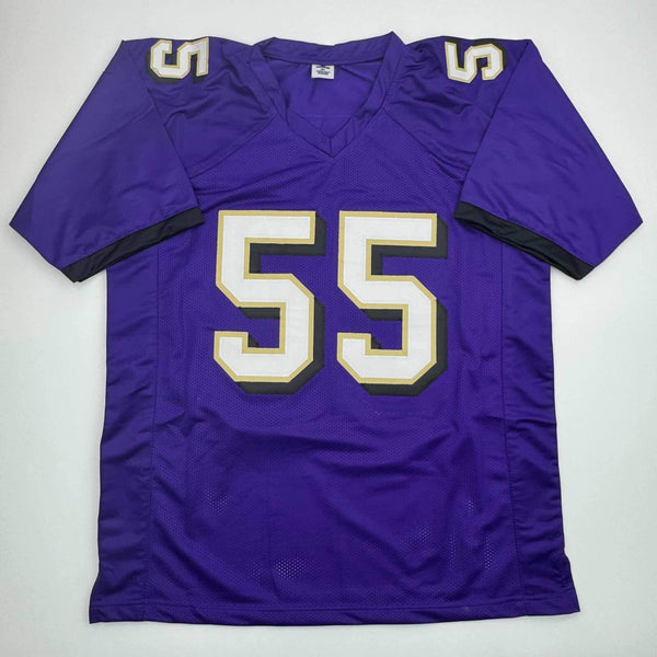 Autographed/Signed Terrell Suggs Baltimore Purple Football Jersey JSA COA #2 Jersey has no brand names or logos. This is a custom jersey and was not manufactured by or in any manner associated with any professional sports league or manufacturer. This custom jersey carries no professional sports league designation. The item is intended to be an autographed collectible. The custom jersey displays the name and number of the player. This item in no way is affiliated with or connected to any professional sports organization. Size is XL.